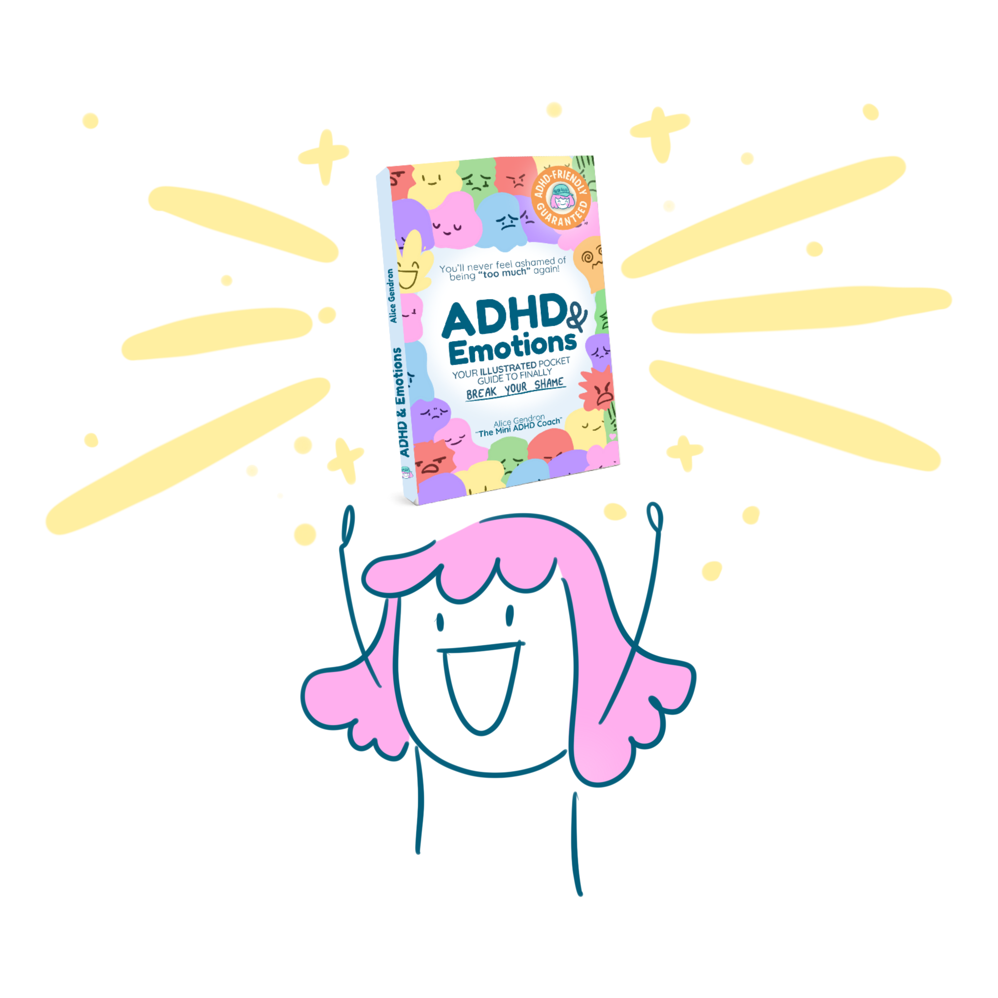 Alice Gendron was diagnosed with ADHD at the age of 29 and created her online platform, The Mini ADHD Coach, to navigate her diagnosis and help others to make sense of theirs too. Alice's funny and relatable illustrations are loved around the world. She currently lives in Bordeaux, France and has also lived in Melbourne, Australia.